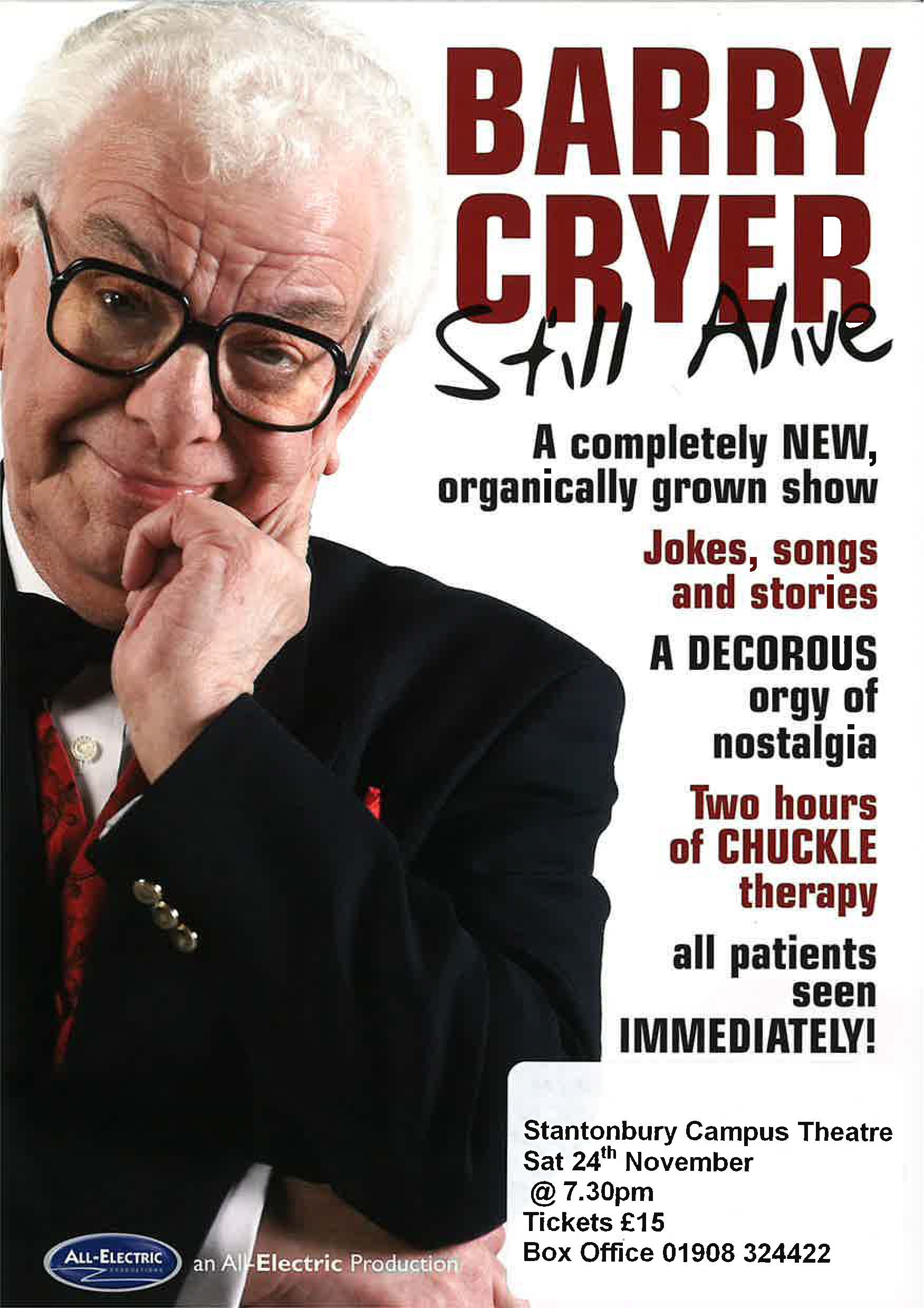 High-Profile Guests: Over the years, the theatre has welcomed a diverse array of leading names to its stage, including jazz greats Dame Cleo Laine and Sir John Dankworth (who performed at the opening concert), Jake Thackery, Stephane Grappelli, Timothy West & Prunella Scales, astronomer Sir Patrick Moore, Dom Joly, Henry Blofeld, John Challis, Germaine Greer, John Oliver, Alan Johnson, Paul Sinha 'The Sinnerman' and Larry Adler. The theatre has also been a venue for the recording of the BBC's Question Time.