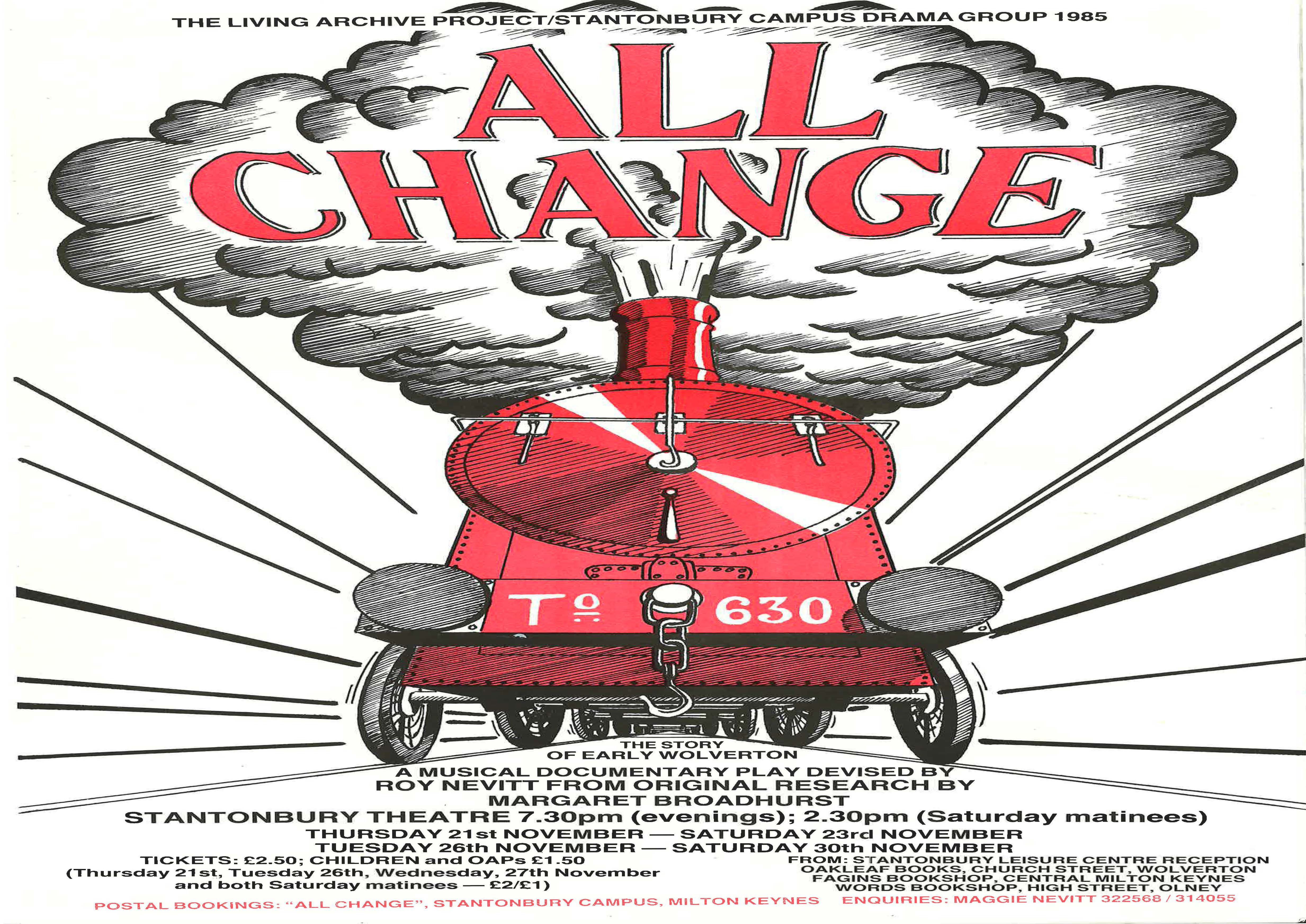 Connection to Milton Keynes Theatre: All Change had the honour of being the very first drama to be staged in the new, city-centre venue, Milton Keynes Theatre, when it opened in 1999 - bringing the local community story to the city's main stage. MK Theatre's opening concerts were planned out of the Stantonbury Theatre offices.