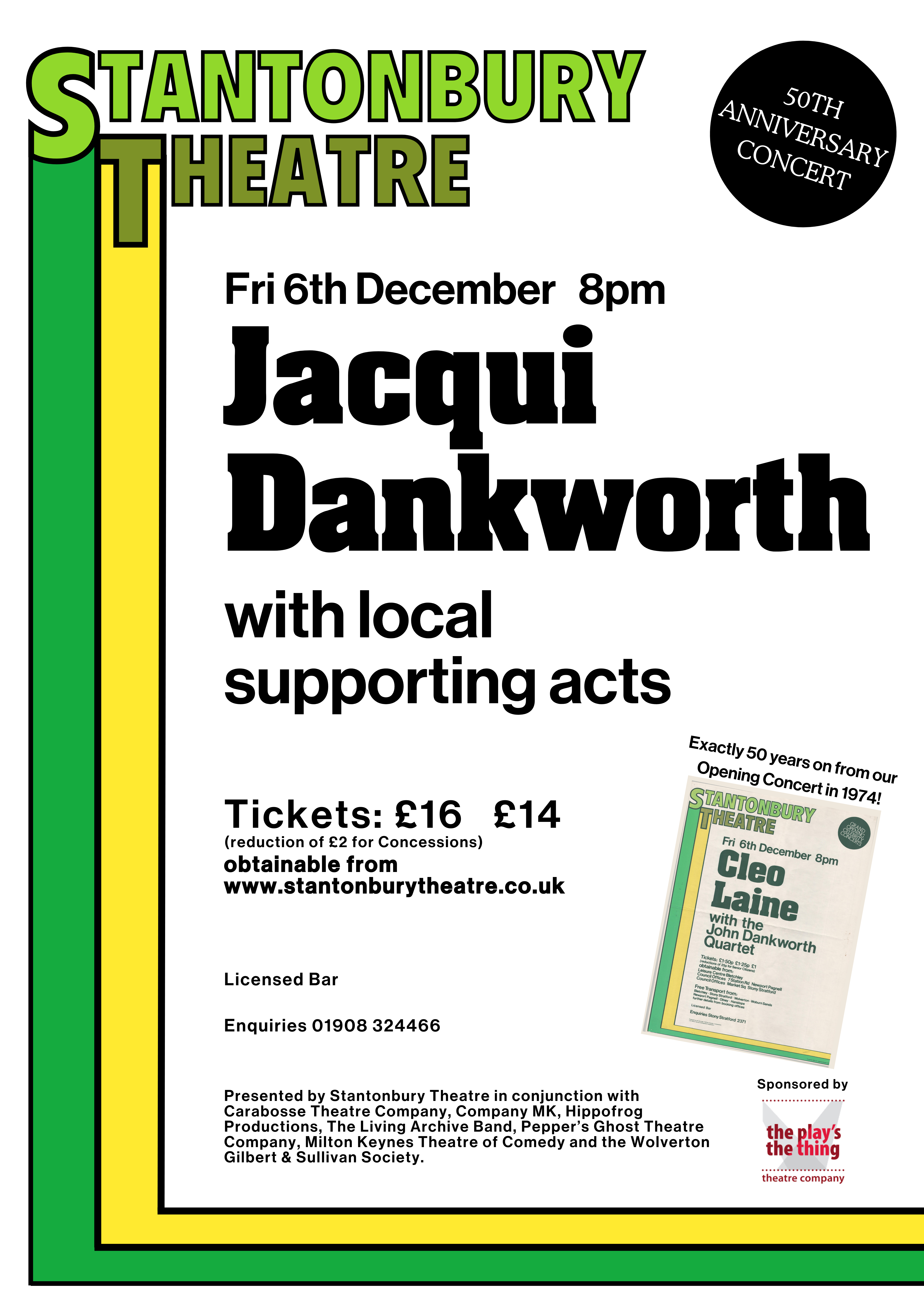 Mirroring the Past: For the Theatre's 50th Anniversary, Jacqui Dankworth headlined a concert on Friday 6th December 2024 - exactly 50 years after her parents opened Stantonbury Theatre with a celebrity concert on Friday 6th December 1974.